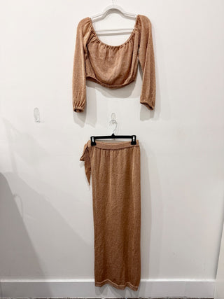 Lovers and Friends metallic set crop top and tie maxi skirt, S