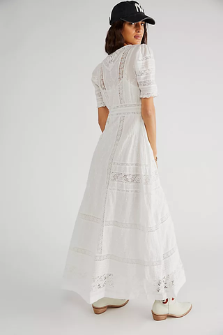 LoveShackFancy Kylen Victorian Lace Trim Maxi Dress White Women's Size US 0