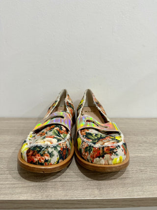 MSGM Floral-Print Canvas Slip On Loafers Flat Multicolor Women's Size EU 40
