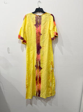 Myriam Arroyave Pattern Eyelet and Sequin Embellished Cover Up Dress Yellow S/M