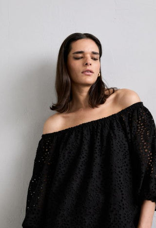 Alice + Olivia Artemis Poplin Off-The-Shoulder Eyelet Mini Shift Dress Black Women's XS