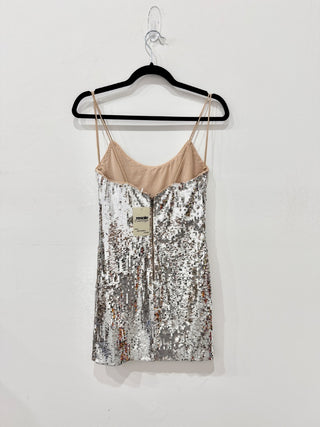 Alla Berman Eleanor Zebra Print Sequins Puff Sleeve Mini Dress White/Black XS