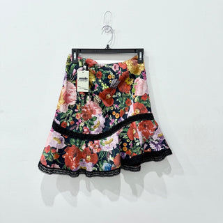 Alice + Olivia Eriko Lace-Trim High Rise Floral Mini Flare Skirt Multi Women's 4