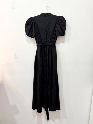 NWT Arias 100% Cotton Gathered Shoulder V-Neck Maxi Dress Black Women's Size 8
