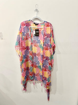 NWT America & Beyond Mauve Sedge Rush Sea Coral Cover Up Colorful Women's Large