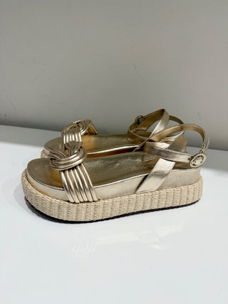 NWT Alexandre Birman Vicky Bounce Knotted Platform Espadrille Sandals Gold EU 39