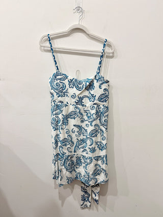 NWT Alexis Vine Print Vilas Tiered Tie Waist Midi Dress Blue Women's Size Small