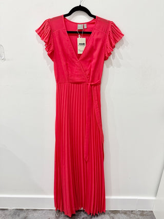 NWT ASOS DESIGN Flutter Sleeve Pleated Textured Chiffon Maxi Dress Red Womens 0