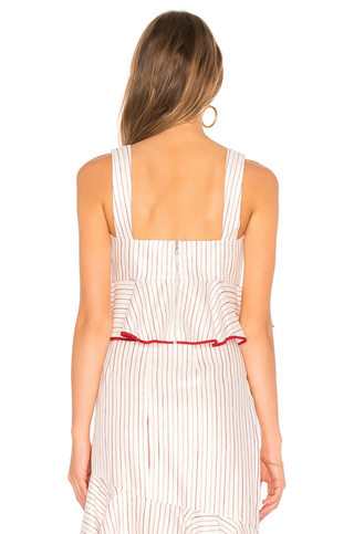 NWT Alexis Iman Sleeveless V-Neck Ruffle Crop Top Rouge Stripes Women's Small
