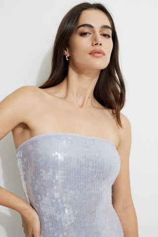NWT Dynamite Sequinned Strapless Tube Maxi Dress Clear Gray Women's Size XS
