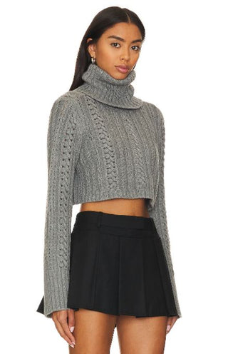 NWT Camila Coelho Daria Cable Knit Turtleneck Cropped Sweater Gray Women's XS