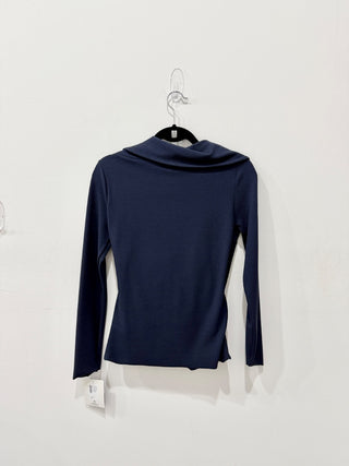 NWT Chiara Boni Lella Crepe Long Sleeve Blouse Midnight Blue Women's 42/ US 6