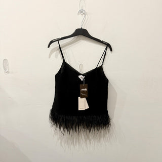 NWT Cinq à Sept Narcissa Ostrich Feather-Trimmed Crêpe Tank Top Black Women's XS