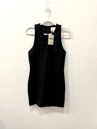 NWT Cinq A Sept Irene Lace Up Tie Cut Out Bodycon Mini Dress Black Womens Size 8