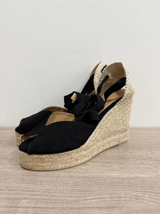 NWT Castaner Bilina Canvas Ankle Strap Espadrille Wedge Sandals Black Women's 9
