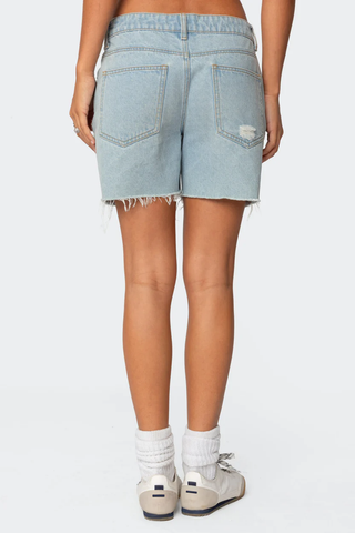 NWT Edikted Tomboy Low Rise Raw Hem Denim Jean Shorts Light Blue Women's Size S