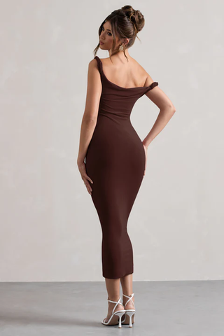 NWT Club L Salome Twisted Asymmetric Midi Dress Chocolate Drizzle Women's Size 2