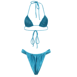 NWT Divino Seas Satin Inika Top & Eclat Bottom Bikini Set Blue Atoll Women's XS