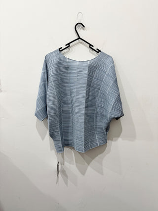 NWT Issey Miyake Plisse Pleats Please 3/4 Sleeve Blouse Top Light Blue Women's M