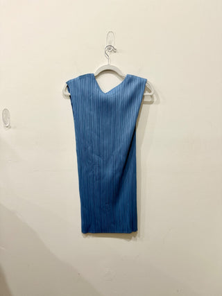NWT Issey Miyake Plisse Pleats Please Cap Sleeve Mini Dress Blue Women's Size 4