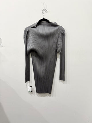 NWT Issey Miyake Pleats Please Long Sleeve Funnel Neck Mini Dress Gray Women's 4