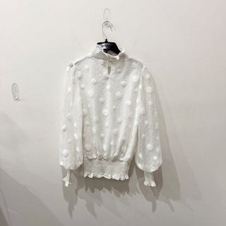 NWT Gracia Long Sleeve Ruffle High Neck Dot Texture Blouse White Women's Size M
