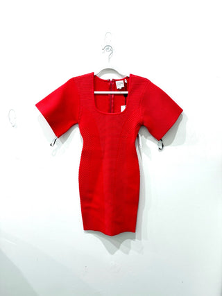 NWT Herve Leger Contour Corset Ribbed Knit T-Shirt Banded Dress Rouge Size XXS