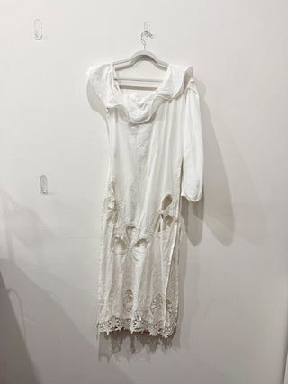 NWT Myriam Arroyave Asymmetric Sleeve Semi Sheer Cover-Up Midi Dress White S/M