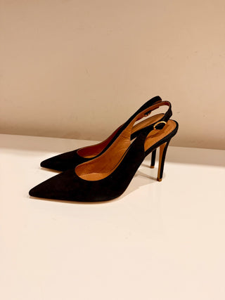 NWT Mansur Gavriel Suede Pointed Toe Classic Heel 100mm Slingback Black EU 37.5