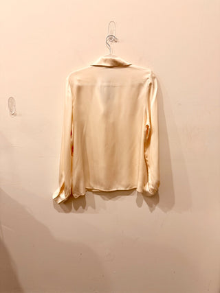 AMUR Cynthia Cotton Puffed Sleeve Cable Crochet Knit Sweater White Womens Size M