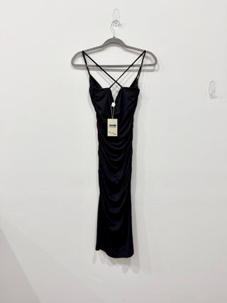 NWT Susana Monaco Ruched Jersey Crossback Bodycon Midi Dress Black Women's S