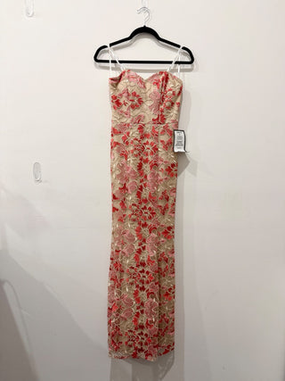 NWT Speechless Embroidered Floral Strapless Long Mermaid Dress Coral/Red 1 / S