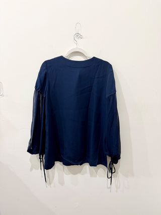 Piu Stripes With Navy Piping Long Sleeve Sleep Pajama Top Blue Men's Size M / L