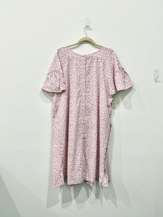 Plume 100% Cotton Heart Print Hospital Gown White and Pink Women's One Size