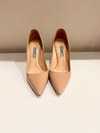 Prada Patent Leather Slip On Pointed Toe Stilettos Pumps Beige Women's EU 37.5
