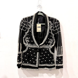Primetime Pearl Beading Long Sleeve Shawl Lapel Formal Blazer Black Women's Small