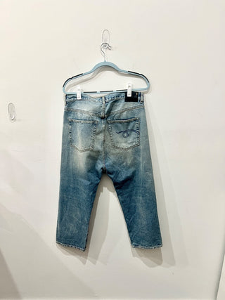 R 13 High Rise Copped Wide Leg Jeans Light Denim Cloudly Blue Women's Size 27