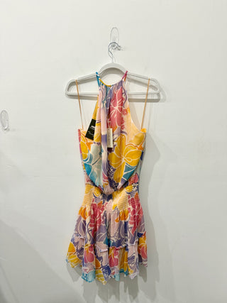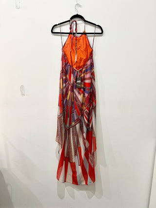 Ramy Brook halterneck printed 100% silk high low dress, S