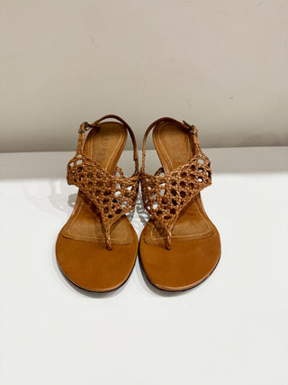 Ralph Lauren Leather Braided Slip On Thong Slingback Sandals Brown Womens Size 6