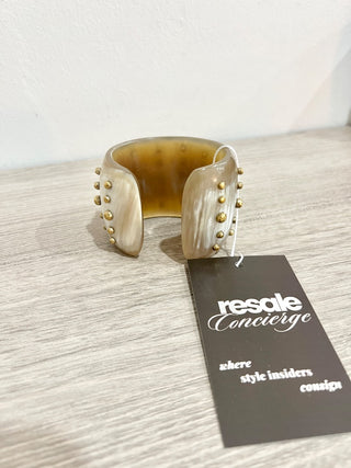 Ashley Pittman kiwiko studded cuff bracelet carved ivory, XS
