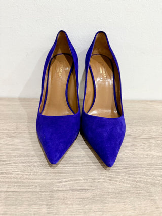 Aquazzura Suede Slip On Pointed Toe Stilettos Heel Pumps Blue Women's Size EU 39