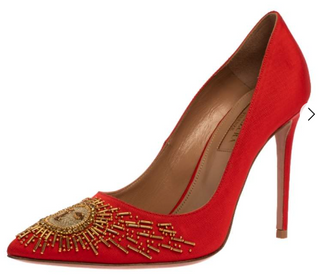 Aquazzura Moire Satin Sunlight Embellished Pointed Toe Pumps Orange Womens EU 40