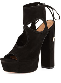 Aquazzura Sexy Thing Suede Ankle Strap Cutout Chunky Platform Heels Black EU 39
