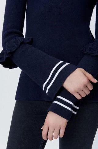 Rebecca Minkoff Cara Ruffle Bell Sleeve Pullover Sweater Navy Blue Women's XS