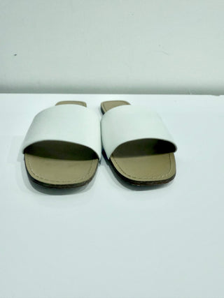Raye Houston Leather Wide Strap Flat Slides Sandals Off White Womens Size US 7.5