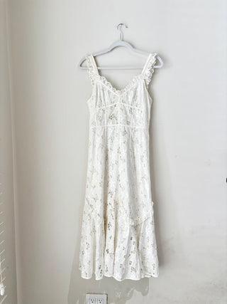 Rebecca Taylor Adriana Eyelet Ruffle Trim V-Neck A-Midi Dress White Women Size 0