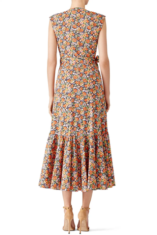 Rebecca Taylor Moonlight Floral Print Poplin Ruffle A-Line Wrap Dress Orange 4