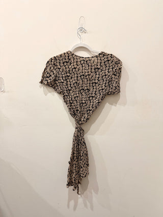Rebecca Taylor Short Sleeve Velvet Silk Pullover Top Blouse Black Women US 2