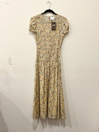 Reformation Kiria Yasmeen Puffed Sleeve A-Line Midi Dress Cream/Light Yellow 6