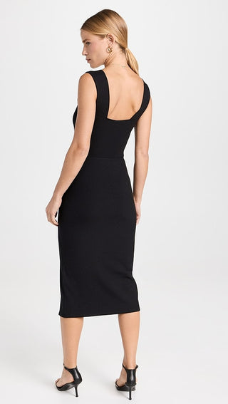 Reformation Cassi Sleeveless Square Neck Ribbed Knit Bodycon Midi Dress Black M